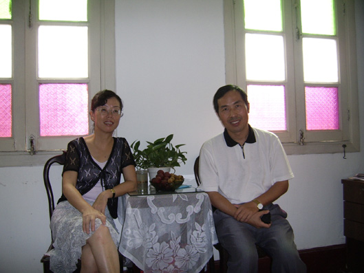 本文作者与诗人舒婷(左)在厦门鼓浪屿家中的合影
