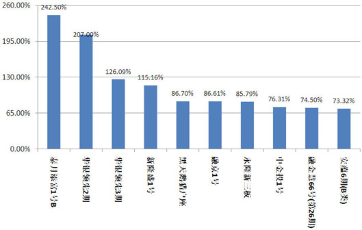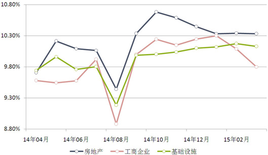 本月中长期产品收益缺失,短期产品收益略降。1-2(含)年期限段产品平均预期收益率为10.04%,环比下降5.94BP,其中,房地产领域平均预期收益率为10.33%,环比下降0.90BP,工商企业领域平均预期收益率为9.80%,环比下降28.67BP,基础设施领域平均预期收益率为10.13%,环比下降4.57BP;2-3(含)年期限段产品平均预期收益率为10.14%,环比上升16.79BP,其中,基础设施领域平均预期收益率为10.00%,环比上升14.00BP。(图6)