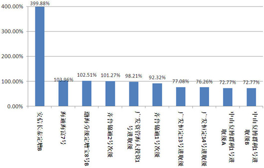 从表现最好的产品收益情况看,月度收益率前十的产品中,混合型计划6款、股票型计划2款、债券型和其他型计划各1款。(图10)