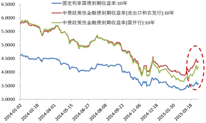 财政部主导的地方政府债券置换预计将于二季度中期开始逐步释放,导致2015年的债券计划发行量远超历史同期,大幅增加了利率债的供给。这一政策使债券二级市场悲观预期弥漫,提前反映到了市场收益率上。