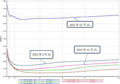 2015年初,债券市场收益率有所下降。3月开始,债券市场出现了较大幅度调整,并在3月末有所加速。具体表现为市场债券收益率大幅上升,其中10年期国家开发银行债券的收益率从2月末低点的3.66%升至3月末的4.28%,单月上升62个bps,10年期国债收益率从2月末低点的3.33%升至3.62%,单月上升29个bps。10年期国债收益率和短期债券收益率均回到年初水平。利率互换曲线较2013年底整体下行,2015年3月底较2014年底有所上升。