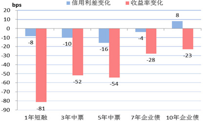 图7 4月末相对3月末AAA等级信用利差和收益率变化