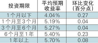 从银行间市场资金面来看,本月短中长期资金利率均表现为逐步下滑态势,其中1个月期SHIBOR利率跌至3.5%左右,3个月期也跌至4%。但是,银行理财产品的收益率并未如SHIBOR利率同向变动,反而出现小幅上涨。其中,1个月以内及6-12个月期限类型理财产品的平均预期收益率涨幅明显,均超过0.2个百分点,其它期限类型产品则微幅上涨。银行理财收益与SHIBOR反向变动的原因可能在于股票市场的火热致使银行担忧资金外流,从而不宜下调产品收益率。(表1)