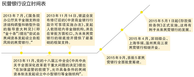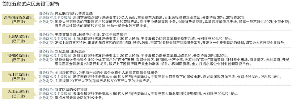 编者按:民营银行不是新提法,对于民营银行的全民化关注开始于2000年,此后民营银行的发展可谓经历多重波折。去年9月份,国务院、央行、银监会表态,鼓励尝试由民间资本发起设立自担风险的民营银行,民营银行的步伐提速;今年4月三家民营银行相继开业;5月存款保险条例正式实施……民营银行已正式上路,而这条闯新与成长的路上却也充斥了几多烦恼。如果说2014年是民营银行的破冰之年,那么到了2015年,在总理的“成熟一家,批准一家,不设限额”的“硬承诺”之下,可谓是对民营银行给够了“底气”。民营银行之所以引发关注,原因在于社会上对民营银行寄予很高期望:希望借助民营银行这一创新,解决民营企业融资困境,扶持中小企业发展。同时也在于,传统银行业是国有资本占据主导地位的行业,引入民间资本,意味着银行业可能发生结构性的变化。随着利率市场化改革等金融领域的改革逐步深入,设立民营银行将有利于打破大型银行对市场的垄断,提高资金的使用效率,倒逼国有银行和商业银行进行产品改革,更好满足中小企业和农村地区的发展需求。