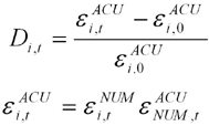 公式中i国货币相对于ACU的价值是该i国和篮子货币的双边汇率的产物。我们计算i国货币相对于ACU的偏离百分比衡量其相对于这一基准货币单位的汇率变动情况,如上述第二个公式所定义的。