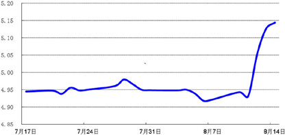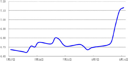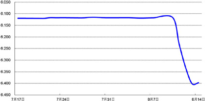 上周,央行宣布完善人民币对美元中间价形成机制,并一次性贬值近2%,带动人民币对美元即期价格大幅下跌;此后,央行为稳定预期,召开媒体吹风会,缓解市场恐慌情绪,人民币对美元汇率转稳。周五,人民币对美元即期价格收盘于6.3918,较前一周贬值2.85%,中间价较前一周贬值4.38%。