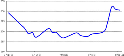 债券市场:上周,银行间债市现券收益率随人民币汇率走势大幅波动:人民币意外贬值引发资本外流忧虑,令市场产生大量抛盘,收益率快速上行;但随着汇率转稳,现券收益率逐渐企稳并回到前一周水平,中债总指数较前一周小幅下跌0.2至160.97。