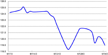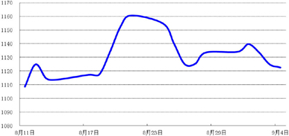上周,因投资者对国际金融市场动荡的恐慌情绪有所缓解,黄金的避险需求下降,加之美元整体走强,拖累国际金价表现,周五收盘于1122.6美元/盎司,当周累计下跌约1%。