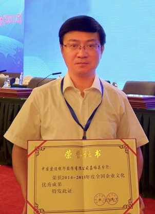 记者的话: 采访稿刚完成,得到一个好消息,嘉峪关分行“企业文化价值驱动体系”荣获全国企业文化优秀成果大奖。这是国家企业文化方面的最高奖项。这套方案也是张继刚制胜的独门秘籍。他以为客户、为社会、为员工、为建行创造价值为坐标,以增强三个能力,加快五个转型为纬度,设计了典型示范、团队管理、合规文化、业务推进、人本关怀、激励考核、慧馨服务和善创者新的文化理念;以“梦想、担当、力量、创新”为经度,为嘉峪关分行编织出一幅美好蓝图。