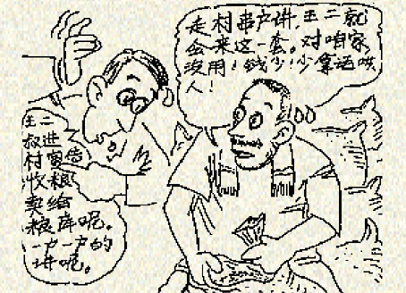 后来情况变了,先有了自由市场,后来又出现了私人粮贩和各种使用粮食的副业,农民的选择多了,王二收粮变得困难了。