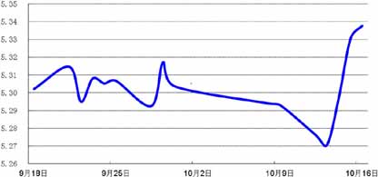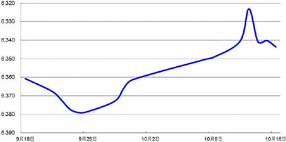 上周,人民币对美元中间价累计小幅升值0.09%,周五报6.3436;由于国内经济数据不佳,人民币对美元即期市场成交价并未跟随中间价上涨,当周累计下跌0.12%,周五收于6.3529。