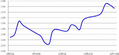 上周,因市场投资者对美联储加息预期减弱,国际金价继续上涨,周五收盘于1176.9美元/盎司,当周累计上涨约1.71%。