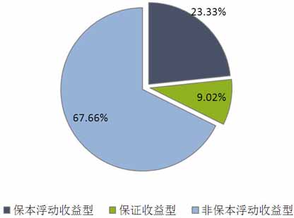 从收益类型来看,保证收益型产品发行564款,环比增加67款,市场占比下降0.28个百分点至9.02%;保本浮动收益型产品发行1459款,环比增加319款,市场占比上升2.01个百分点至23.33%;非保本浮动收益型产品发行4232款,环比增加521款,市场占比下降1.73个百分点至67.66%。(图1)