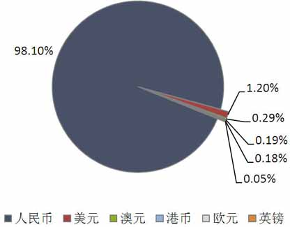 从投资币种来看,人民币产品发行6136款,环比增加913款,市场占比上升0.43个百分点至98.10%;美元产品发行75款,环比减少2款,市场占比下降0.24个百分点至1.20%;澳元产品发行18款,环比减少5款,市场占比下降0.14个百分点至0.29%;港币产品发行12款,环比减少4款,市场占比下降0.11个百分点至0.19%;欧元产品发行11款,环比增加4款,市场占比上升0.04个百分点至0.18%;英镑产品发行3款,环比增加1款,市场占比上升0.01个百分点至0.05%。(图2)