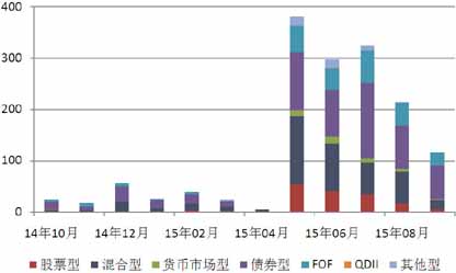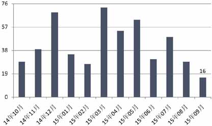 受监管对场外配资指导,本月A股市场震荡下行。9月阳光私募发行数仅录得16款,为2014年5月以来最低点。(图7)