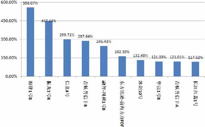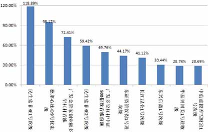 从表现靠前的产品来看,排名前十的产品全是股票型产品,其中,绝大多数是分级产品的劣后级。(图8)