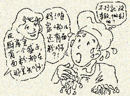 事情的结果是,本该做饺子,结果却成了肉丸面疙瘩汤。客人也纳闷,有肉有面的不包饺子,做什么疙瘩汤,太奇怪了。