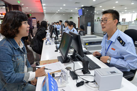 日前,我国自贸试验区中首个国税、地税联合办税窗口在天津自贸试验区中心商务片区综合服务大厅启用,实现国税、地税事务一口受理、一窗统办,有效解决了纳税人往返跑、重复找、重复排队、重复报送资料的问题,为企业办税提供更多便利。这项举措凸显了自贸试验区、双创特区简政放权、服务投资便利化的特性。图/CFP
