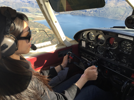 Flight Trainning是新西兰旅游的一个亮点,即到即走式,买票时可以选择飞机时间,由于我们是第一次,所以分别选择了20分钟和30分钟。接着就是接受帅哥飞行员的培训了,坐进机舱,我坐左边,帅气机长坐右边,左右各一套仪器,整个机舱内可以坐3-4个人。完成了口述培训就是实践操作了,戴上耳机,只要听他指令,脚下基本不用动,主要操作都在手上,拉动,飞机缓缓升起,我真的把飞机开上了天!地面离我越来越远,翠绿的山峦、碧蓝的湖泊慢慢出现在了眼前,自己驾驶飞机遨游在天空原来是这样的感觉,仿佛一只自由的小鸟,飞往它想去的天堂。