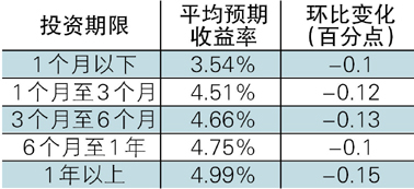 表1 2015年10月人民币银行理财产品平均预期收益率