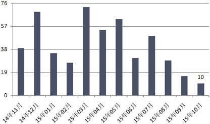 虽然10月A股市场反弹,但相比之前,私募机构更为谨慎。10月阳光私募发行数量仅录得10款,再创低位。(图7)