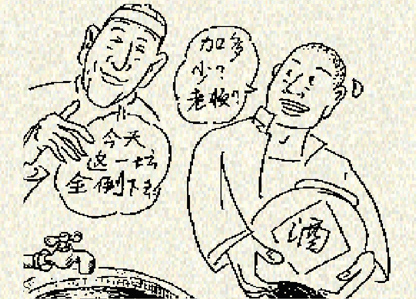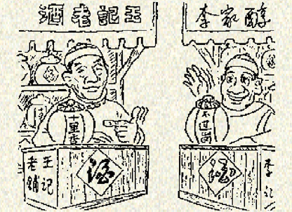 最近,因为生意难做,李四指责王二:你家卖的是水还是酒?酒水的比例竟然达到1:2:王二指责李四:你家往酒里掺水,掺多少也每个准头,随心所欲。你来我往,成了口水战。