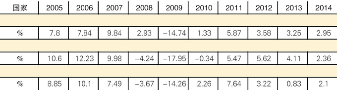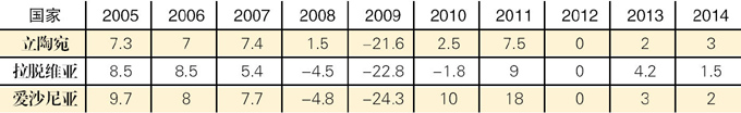 表2 波罗的海三国2005-2014工业生产增长率情况 单位:百分比