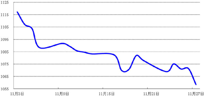 上周,因市场对美联储12月加息预期升温,令美元走强,国际金价承压,周五收盘于1058.41美元/盎司,当周累计下跌1.79%,为连续第五周下跌。