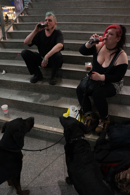 人们对火车站里的这两个奇葩视而不见,他们带着狗游逛,顺便讨些零钱给狗买吃的。他们轻松快乐的表情,是熙熙攘攘的“正常人”所少有的,我一时怀疑,到底是谁更正常?要是我的儿女也选择这种生活方式如何?从前我是不可能接受的,如今我会坦然尊重他们的选择。