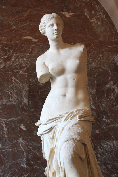 这座雕像自从被发现以后,一百多年一直被公认为希腊女性雕像中最美的一尊。这座女神像可以从四面欣赏,无论从那个角度看,都有某种统一而富有变化的美。她的手臂断了,世人引为遗憾,许多艺术家猜测过她的手原来的姿势,设想并造出各种复原的构图和雕件,但摆在原作面前都黯然失色,始终没有一个方案能通过。为了怕落一个狗尾续貂的结局,最后一切复原打算都收了场,她还是断臂的维纳斯,人们不因为她断臂而感到她不完美,恰恰相反,人们感到它完整无瑕,而且似有生命,有体温。