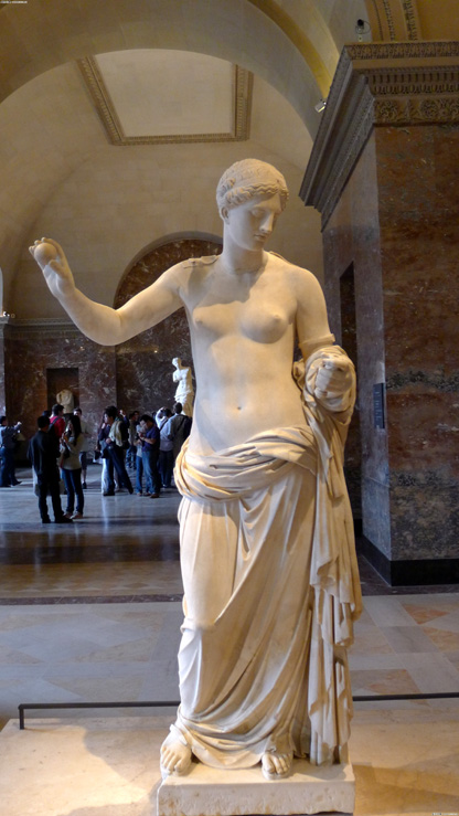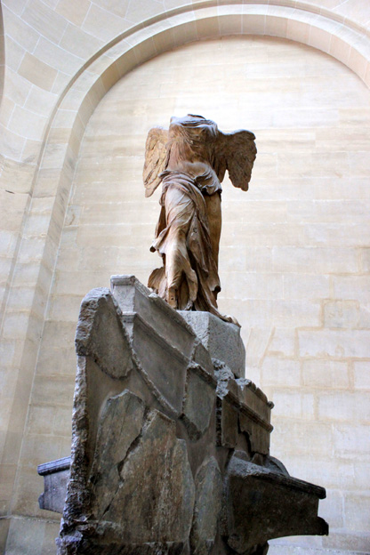 这尊雕像自公元前200年就矗立在萨莫色雷斯岛海边的石崖上,面对着茫茫大海。作者虽已无从考证,但却被世人奉为稀世珍宝,维多利亚是胜利的化身,她长着一对翅膀,身材健美,仿佛是从天徜徉而下的仙女般,衣袂飘然。胜利总是伴随着她到来。最早只是碎块,后经多年修复才得以重新站立起来,但仍然缺头少臂,据说这尊雕像是为了纪念小亚细亚的统治者德梅特里奥斯一世在海战中打败托勒密王国的舰队而创作的。原本纯白色的雪花石,由于长期浸泡在爱琴海中加上微生物的繁衍与海水的浸蚀,让这尊展翅欲飞的女神充满了沧桑,仿佛讲述着她从天而降,站在船头引导着舰队乘风破浪冲向前方取得胜利的故事。