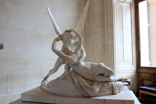 卢浮宫中有很多希腊神话背景的雕像,《PsycherevivedbythekissofLove》雕刻出维纳斯的私生子丘比特和世间最美丽的公主普赛克的美妙爱情故事,被誉为古希腊版的梁祝,睡美人的故事也以它为原型,卢浮宫还有很多油画也是反应这一题材的。