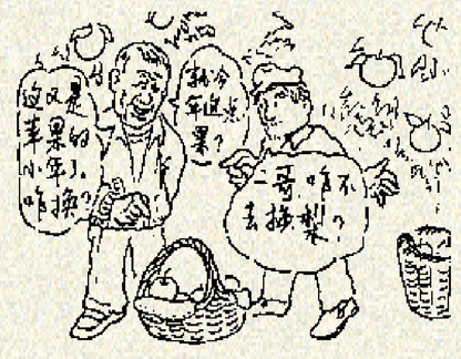 事后,出了高价换苹果的李村人不乐意了。最后,为了平息众怒,两村签下君子协议:以后两村交换,1斤梨换1斤苹果,不许涨价。