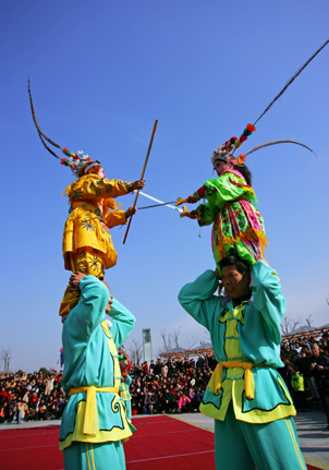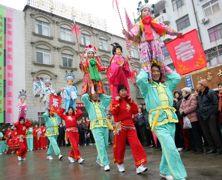造趺一直是民间庙会上最令人瞩目的节目,由于演员站在人肩上表演,高出人群,加之技巧惊险,还有精彩剧情,因此,人们常说:“造趺一出来,场面就热闹。”