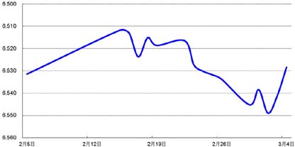 上周,美元对人民币中间价弹性明显增强,即期市场成交价也呈现双向波动的态势,周五收于6.5218,较前一周下跌0.24%。短期内,预计人民币将在震荡中小幅走升。