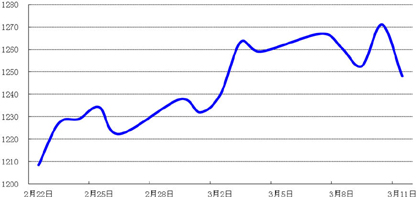 上周,美元指数疲软,以美元计价的国际金价随之上扬,并再次触及13个月来高位。周五,因美元反弹和原油及全球股市上涨,金价承压,收盘于1248.06美元/盎司,较前一周下跌0.87%。