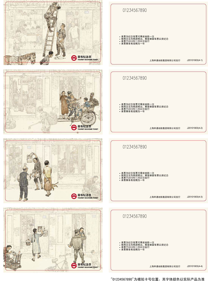 上海地铁纪念卡作为象征城市名片的有效载体,将具有浓郁民族风格的作品和具有海派文化特色的作品,以地铁纪念卡的形式再现,给人以美的享受,广受赞誉。而由于贺老等大师级画家的积极参与,更让上海地铁纪念卡精彩纷呈,贺老的老上海风情画系列,以令人惊叹的细腻细节,记录下这个城市的万千风情,勾引起无数上海人的“乡愁”。白描之于贺老,是连环画的独特表现手法,体现中国绘画的线条功夫,同时也有另一层意思,就是“直截了当地表达自己人生的悲欢”。