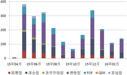 产品发行:25家机构共发行了140款产品,发行的产品类型明显减少