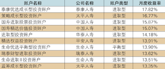 投连险账户业绩表现:月度平均收益率为4.35%,泰康人寿优选成长型投资账户表现最佳