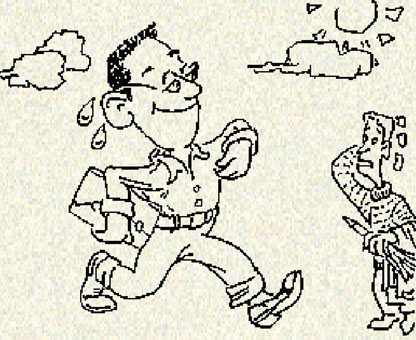 一次,王二穿了一身秋装出差,不到一个星期就来了冷空气,王二冷啊,只好临时跑去买厚衣服,花了不少冤枉钱。