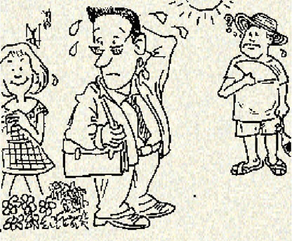 还有一次,春夏之交,出门的时候还有点凉,王二就一点夏装都没带,结果当满大街的人都是短裤的时候,王二还捂在他的春装里。