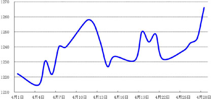 上周,因美国经济数据不及预期,且美联储货币政策会议暂不加息,而日本央行则意外按兵不动,带动美元指数和美股大跌,国际金价快速上涨,并创一个半月新高。周四收盘于1266.08美元/盎司,较前一周上涨2.77%。