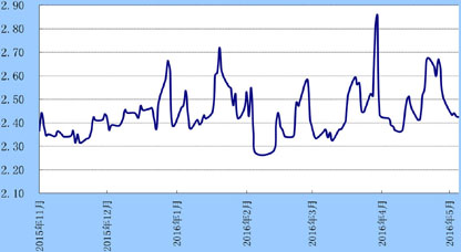 货币市场:随着全面营改增政策不确定因素明晰,加之央行表态PSL将常态化操作,上周银行间市场流动性进一步好转,质押式回购主要品种收益率呈现不同程度的下行,其中,7天期品种收益率较前一周下行10个基点至2.43%。