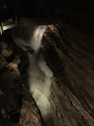 这里因为萤火虫岩洞而成为游客前往的著名景点,当天渐渐擦黑,我们便乘船到达目的地,这里是6.7公里的四层石灰岩迷宫的一部分,岩洞入口处非常低矮,往里走却是别有洞天。石灰壁上有许多贝壳化石的残片和海洋生物化石的残骸,这是百万年前在海底形成石灰岩时留下的痕迹。洞内有一处瀑布,穿过瀑布便到了此行最精彩的萤火虫岩洞,几人成组由工作人员带领着划小船驶入,越来越黑,直到漆黑的不见五指,眼前却愈发清晰的出现了成点、成线、甚至成片的蓝光聚集在一起,仿佛海面映照出满天繁星,直叫人惊叹不已。由于萤火虫怕光,所以洞内是禁止拍照的,很可惜,只能拍到外面的样子,不过,用自己的眼睛亲自去体验,一定不会失望。■ 冰蓝图/文