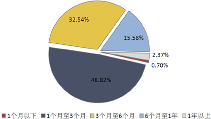 从投资期限来看,1个月以下产品发行了51款,环比减少33款,市场占比下降0.42个百分点至0.70%;1-3个月产品发行了3548款,环比减少64款,市场占比上升0.71个百分点至48.82%;3-6个月产品发行了2365款,环比减少144款,市场占比下降0.88个百分点至32.54%;6-12个月产品发行了1132款,环比减少13款,市场占比上升0.32个百分点至15.58%;1年以上产品发行了172款,环比增加14款,市场占比上升0.26个百分点至2.37%。(图3)