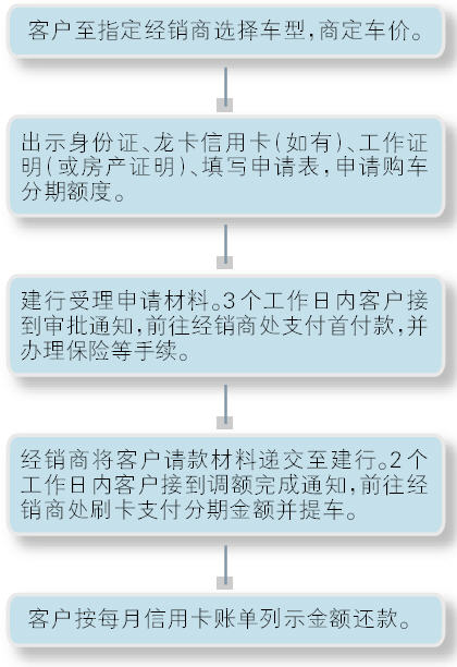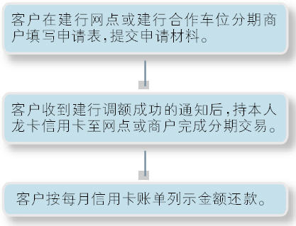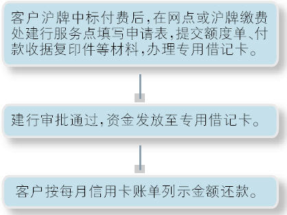 建行信用卡中心相关人士介绍,上海地区的车主在当月沪牌中标并付费后即可申请车位分期,提供身份证件、机动车额度证明、付款收据、龙卡信用卡等材料(无卡可同时申请办卡),建行审批通过后把资金发放至专用借记卡中。车主每月按照信用卡账单列示金额还款即可。分期可选择6期、12期、24期、36期,每月仅0.35%手续费率。