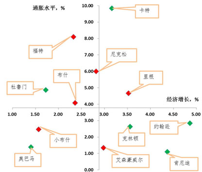 图1 二战后至今美国12位总统执政期间的美国宏观经济