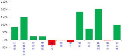 图3 二战后至今美国12位总统执政期间的道指增幅