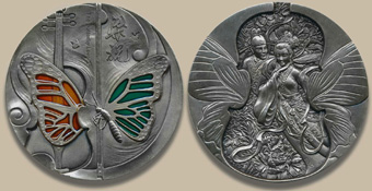 艺术作品的生命力在于不断的推陈出新。由我国著名章牌生产厂家新世纪纪念章有限公司出品的《梁祝》艺术大铜章,其设计突破了通常的章牌创作手法,让人耳目一新,眼前一亮的感觉。