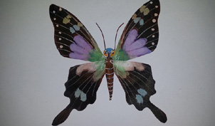 “这哪儿算多?我曾做过一个燕子风筝,36个燕子连在一起,长长一排‘燕子’飞在天上,煞是好看。”说着,宋天亨又拿起一只蝴蝶,说:“你再看看这个蝴蝶风筝,我是按1:1的比例做出来的,它的大小和真蝴蝶一样,而且每只图案都不一样。包括它翅膀上的斑纹,也是我仿照真蝴蝶画出来的。”